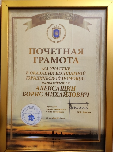 Член Президиума, заведующий а/к "Институт Правозащиты", почетный адвокат России; награжден серебряной медалью им. Плевако; медалью II степени "За заслуги в защите прав и свобод граждан"; знаком отличия "Лучший наставник", опубликовано 74 статьи по юриспруденции; участник: - 4 Международных научно-практических конференций, - 3 межрегиональных межвузовских научно-практических конференций, - 3 Всероссийских научно-практических конференций